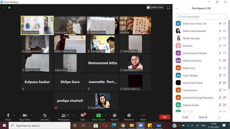 The Visual Thinkers’ Club was introduced in Dec 2020 keeping in mind the need of introducing purposeful Doodling into Education. I realised that if students needed to be helped the first step was to empower educators and give them the confidence and the skill to launch doodle4education in their classrooms. Through EdEnhance, all educators meet up twice or thrice a month, to collaborate, contribute their talents and to grow together in learning a skill thereby throwing away all inhibitions towards simple sketching or doodling.