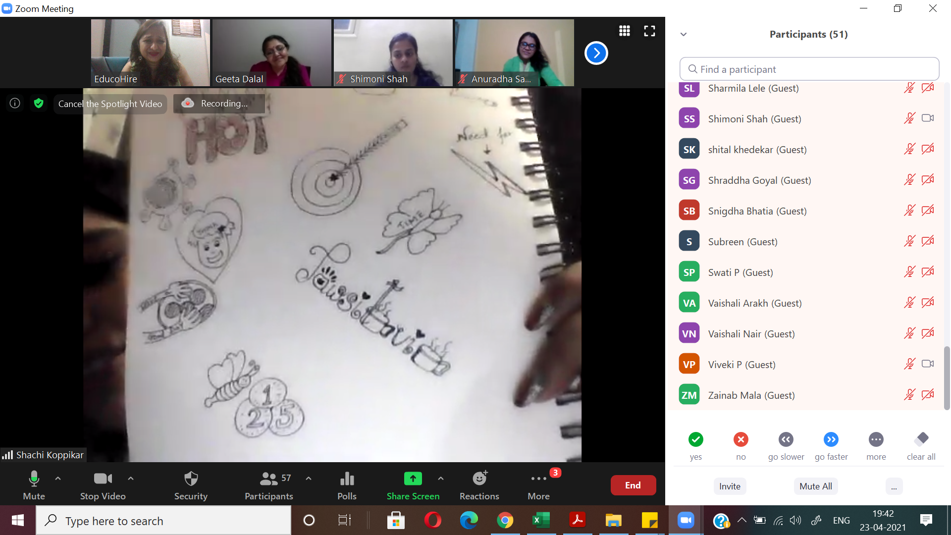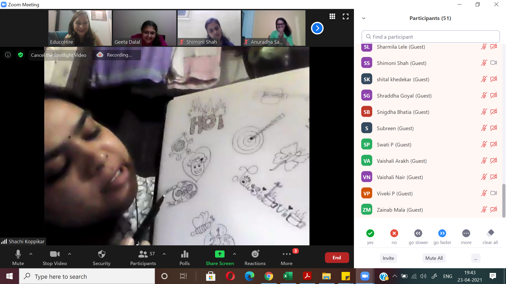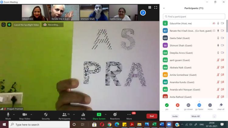 After a fun-filled, activity-oriented WORD DOODLE session with Ms Viveki Pasta Nitin on 26th April 2021, we continue to collaborate, contribute and grow!8th SessionWe are growing and so is the buzz!