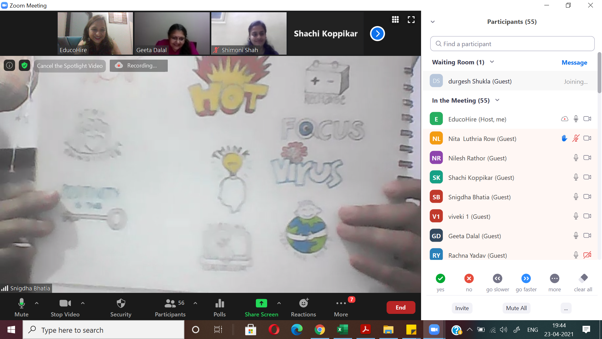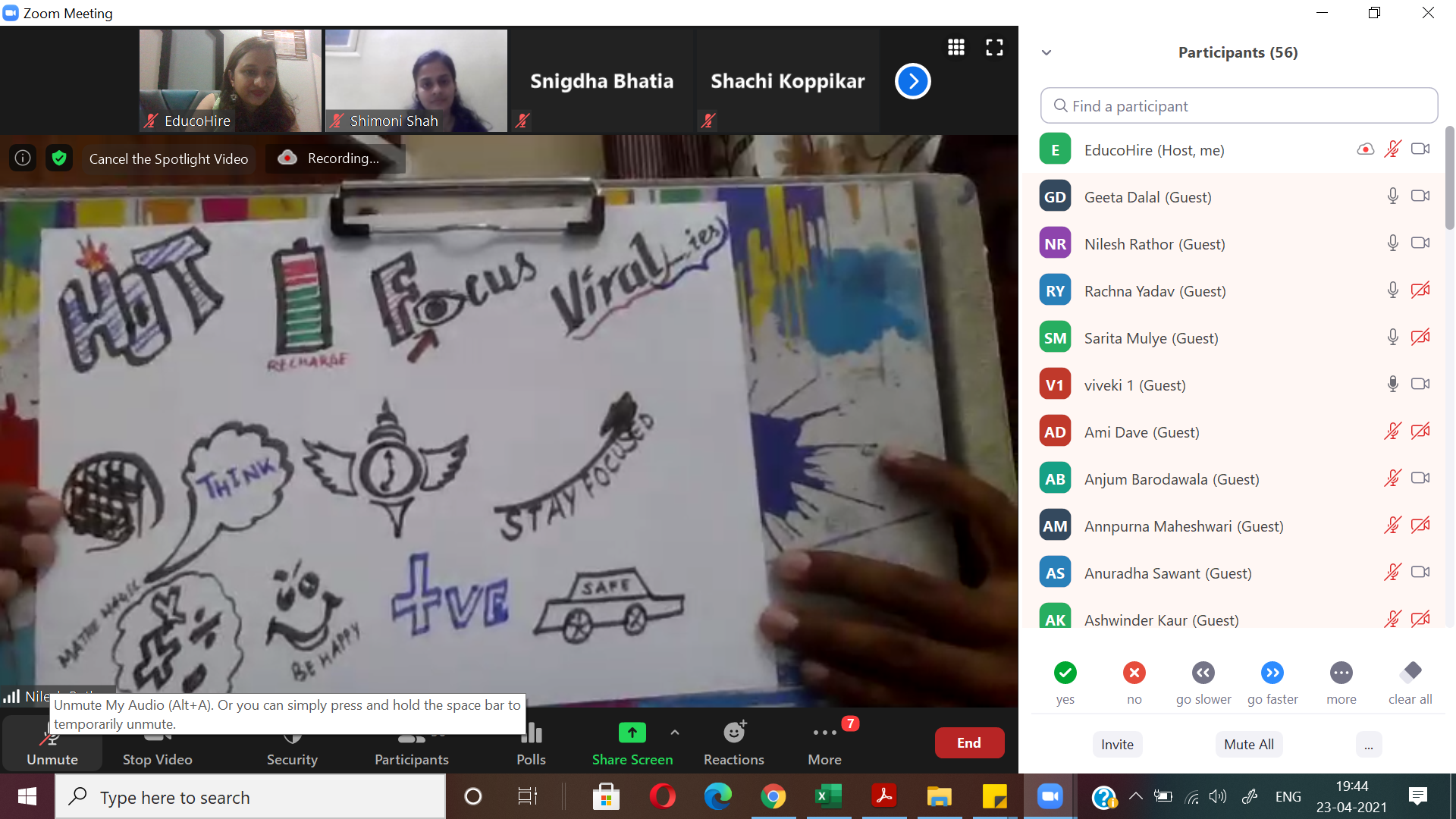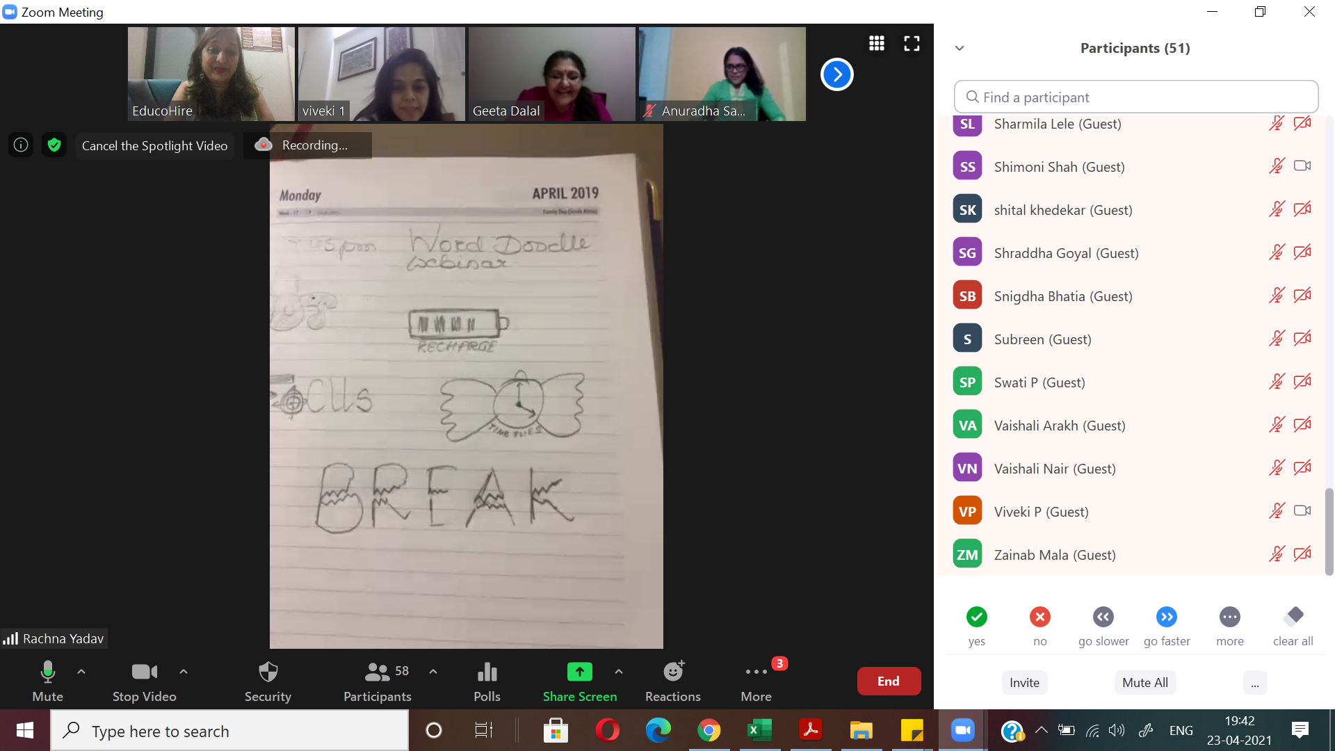 After a fun-filled, activity-oriented WORD DOODLE session with Ms Viveki Pasta Nitin on 26th April 2021, we continue to collaborate, contribute and grow!8th SessionWe are growing and so is the buzz!