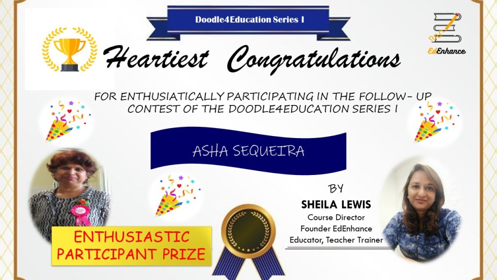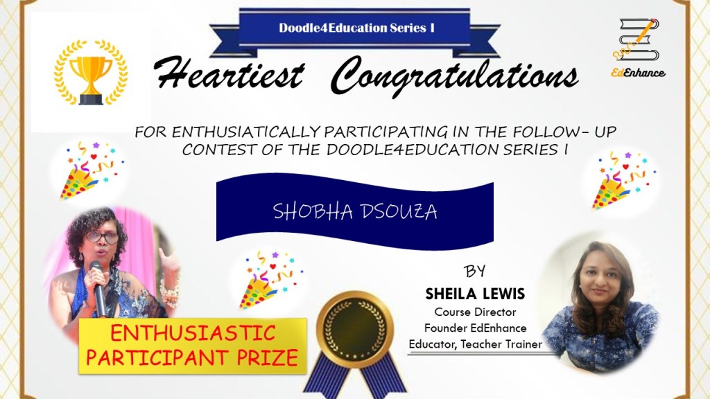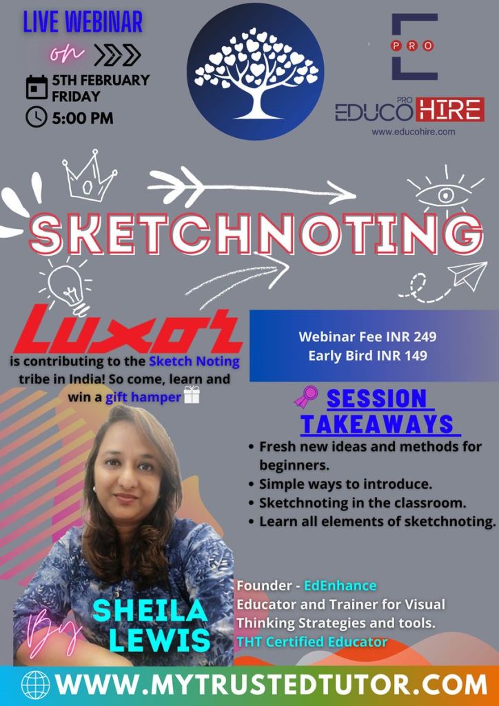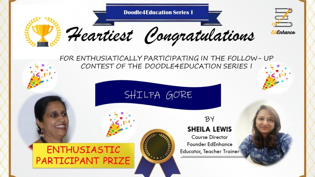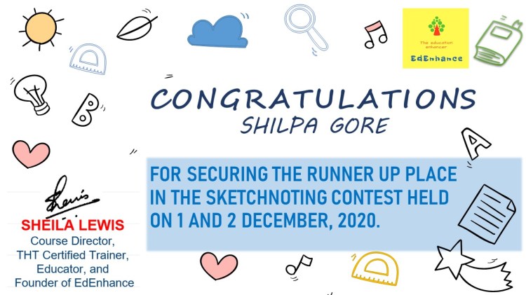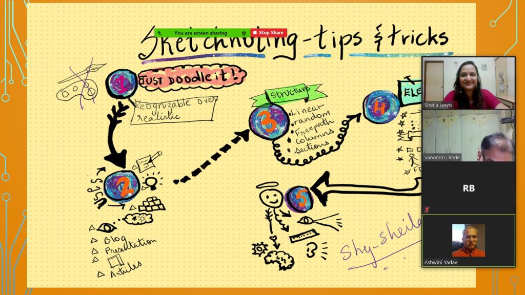 The Visual Thinker’s Club started on 30 Nov 2020. This opened up a whole new world to me. New names and faces and gradually I connected with and grew alongside a number of fine educators. We met as a group twice a month in our free monthly meetups. Finally, I decided to move forward in this mission and launched the website www.sheilasedenhance.com With an overwhelming response from the group members, I decided to launch our first #doodle4education series! Thank you Hema Chandra Naghma ma’am, Geeta Panchamiya-Dalal Ma’am, Snigdha Ogale BhatiaNita Luthria Nilufer Marshal, Nilesh Rathor Sir, Viveki Pasta NitinAnjum Barodawala BhagatRenate Engelen for your huge contribution towards the series!I look forward to the event!Ms Naghma Shaikh never ceases to be a mentor and guide!![]()