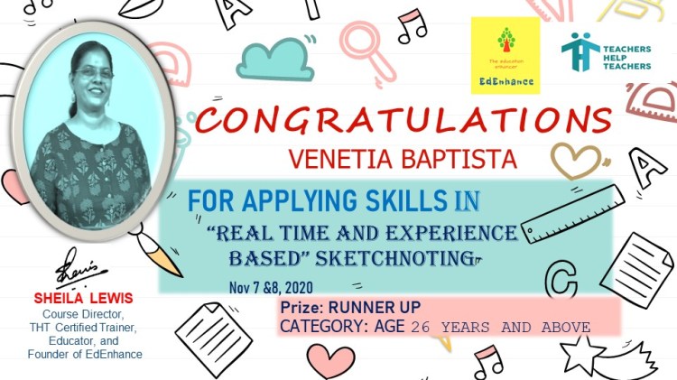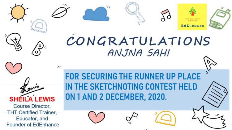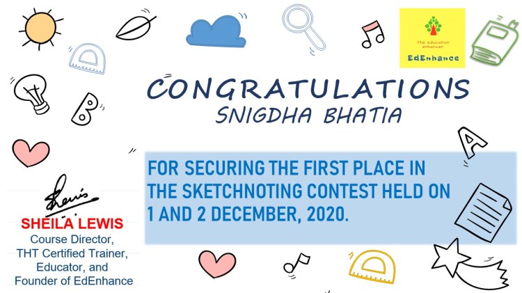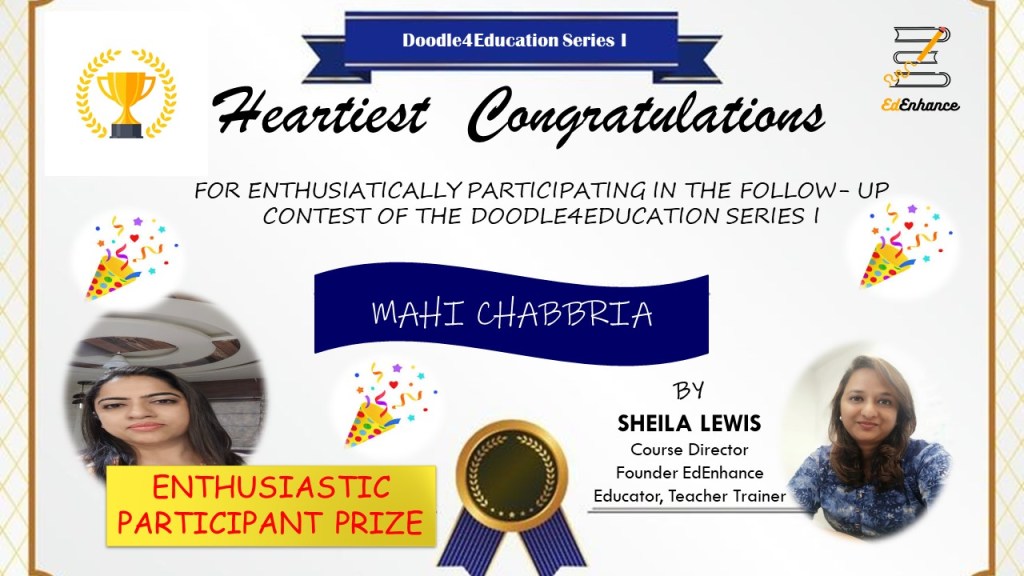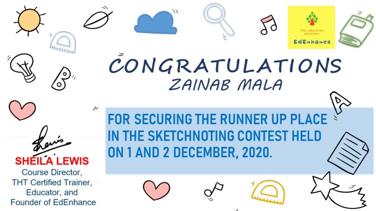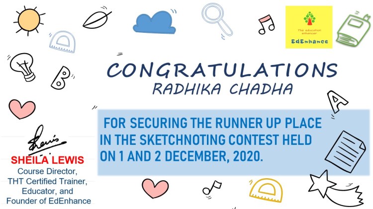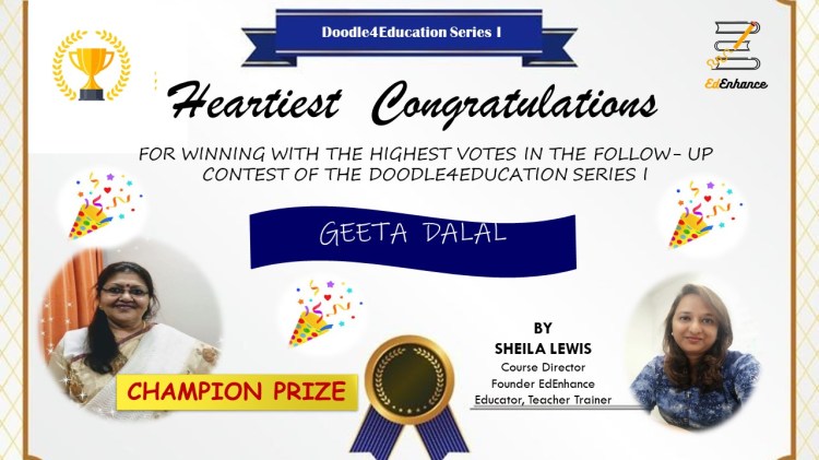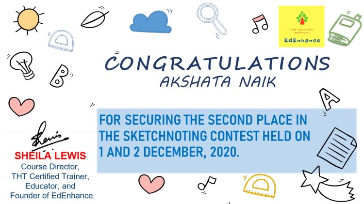 The Visual Thinker’s Club started on 30 Nov 2020. This opened up a whole new world to me. New names and faces and gradually I connected with and grew alongside a number of fine educators. We met as a group twice a month in our free monthly meetups. Finally, I decided to move forward in this mission and launched the website www.sheilasedenhance.com With an overwhelming response from the group members, I decided to launch our first #doodle4education series! Thank you Hema Chandra Naghma ma’am, Geeta Panchamiya-Dalal Ma’am, Snigdha Ogale BhatiaNita Luthria Nilufer Marshal, Nilesh Rathor Sir, Viveki Pasta NitinAnjum Barodawala BhagatRenate Engelen for your huge contribution towards the series!I look forward to the event!Ms Naghma Shaikh never ceases to be a mentor and guide!![]()